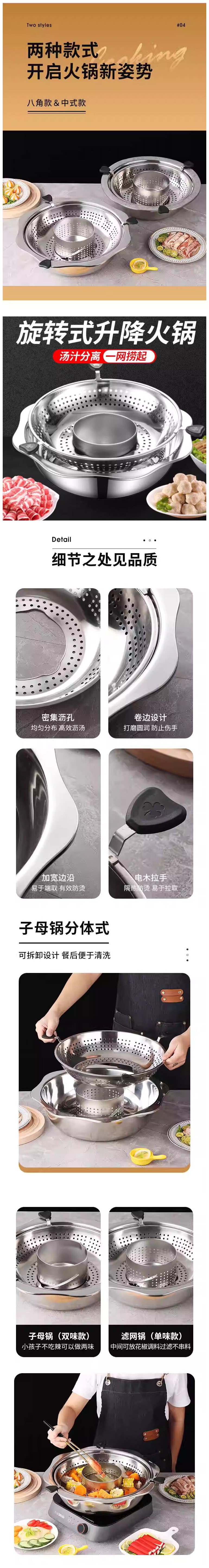 • 商品名称:多功能旋转火锅/滤网锅(单味款)(304升降不锈钢火锅)30cm